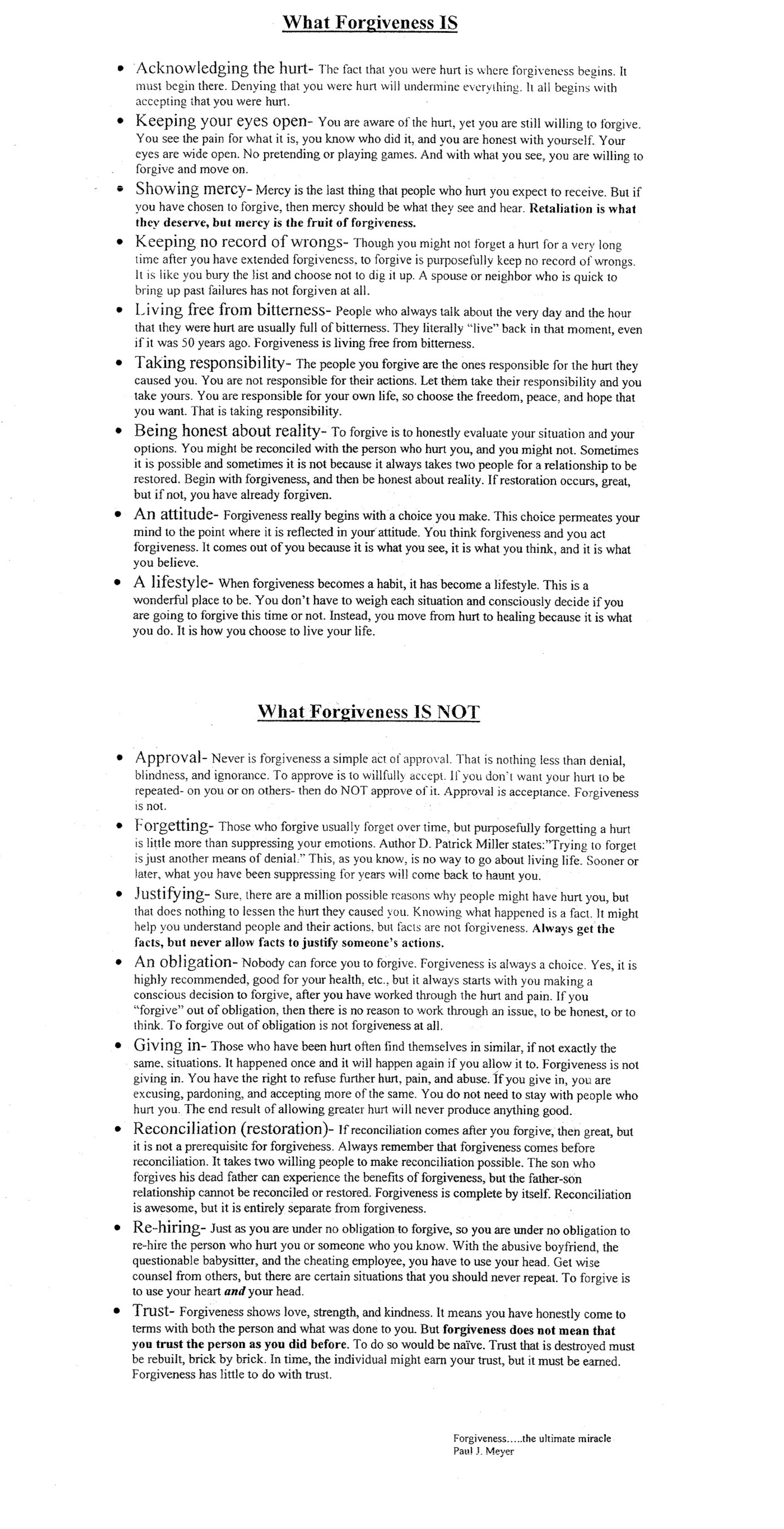 Excerpt from Forgiveness…The Ultimate Miracle by Paul J. Meyer